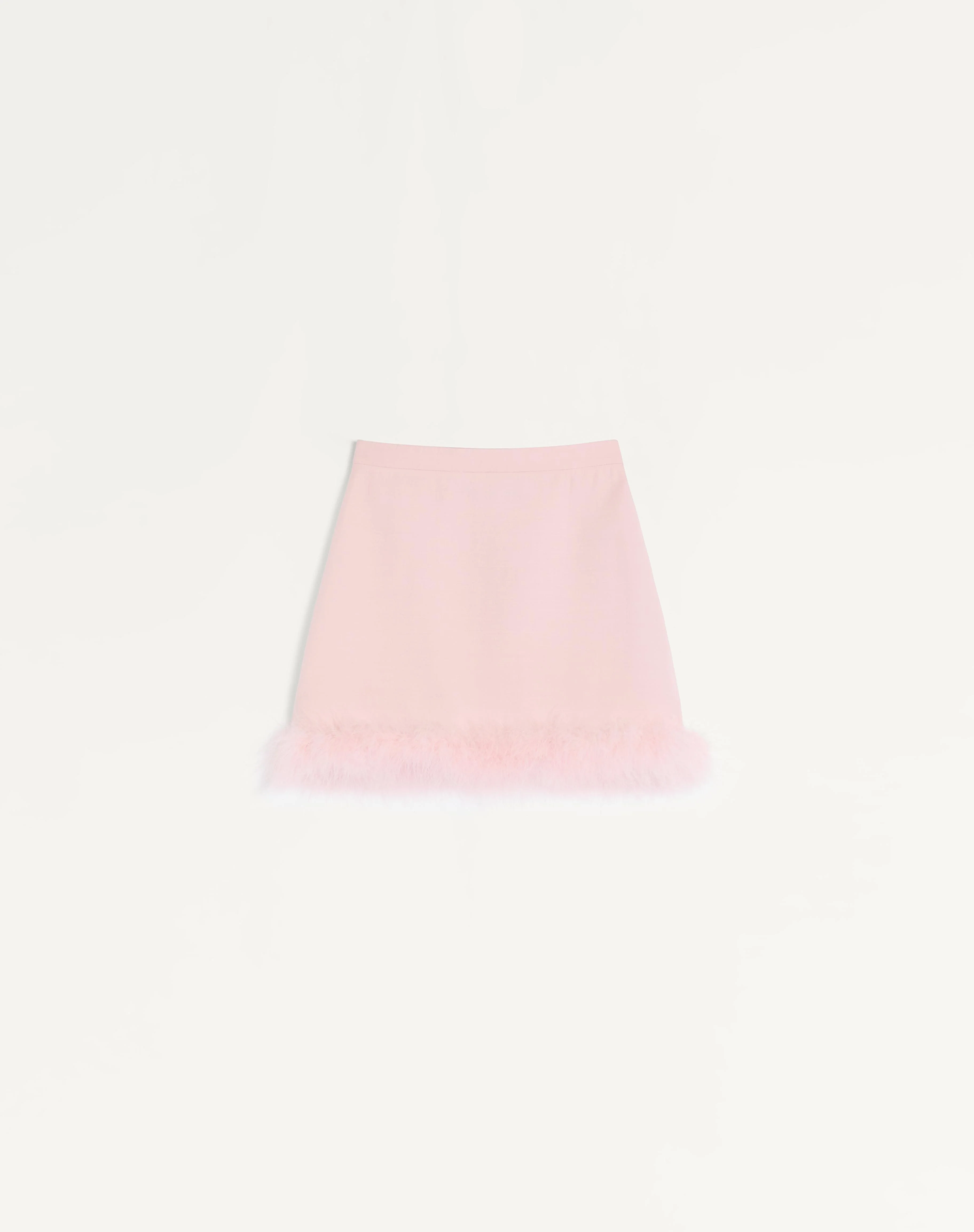 Short Crepe Couture skirt with feather boa hem - Side zipper with hook-and-eye closure - Crepe Couture (65% Virgin Wool, 35% Silk) - Flower, Stripes and VLogo lining (74% Acetate, 26% Silk) - Length: 42 cm / 16.5 in. from the waist in an Italian size 40 - The model is 176 cm / 5'9" tall and wears an Italian size 40 - Made in Italy Product code: 8B3RAEJ51CF_R13