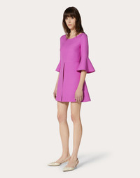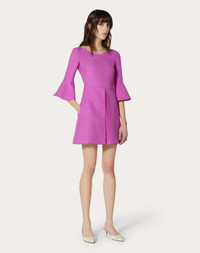 Short Crepe Couture Dress. - Flared sleeves - Concealed rear zipper and hook fastening - Length 90 cm / 35.4 in. - Crepe Couture (65% wool, 35% silk) - Silk lining (100% silk) - The model is 176 cm / 5’9” tall and wears an Italian size 40 - Made in Italy