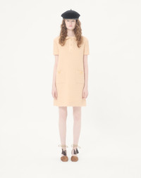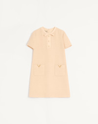 Short dress in Curly Wool with V Gold - Crepe Couture trim and bow - Velvet button detail - Rear zipper and hook-and-eye closure - Curly Wool (95% Virgin Wool, 5% Polyamide) - Habotai lining (100% Silk) - Length: 90 cm / 35.4 in. from the shoulders in an Italian size 40 - The model is 176 cm / 5'9" tall and wears an Italian size 40 - Made in Italy Product code: 8B3VAJD39VM_ET5