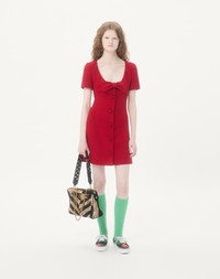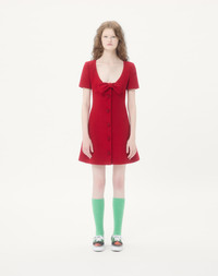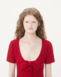 Short dress in Plain Wool Tweed with bow - Wide neckline - Front closure with soutache buttons - Plain Wool Tweed (97% Virgin Wool, 3% Polyamide) - Jacquard Flower VLogo Lining (75% Acetate, 25% Silk) - Length: 87 cm / 34.3 in. from the shoulders in an Italian size 40 - The model is 176 cm / 5'9" tall and wears an Italian size 40 - Made in Italy The look of the model is completed by Valentino Garavani Valentino Garavani And Vans Shoes. Product code: 7B0VAH3090Y_R9M