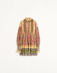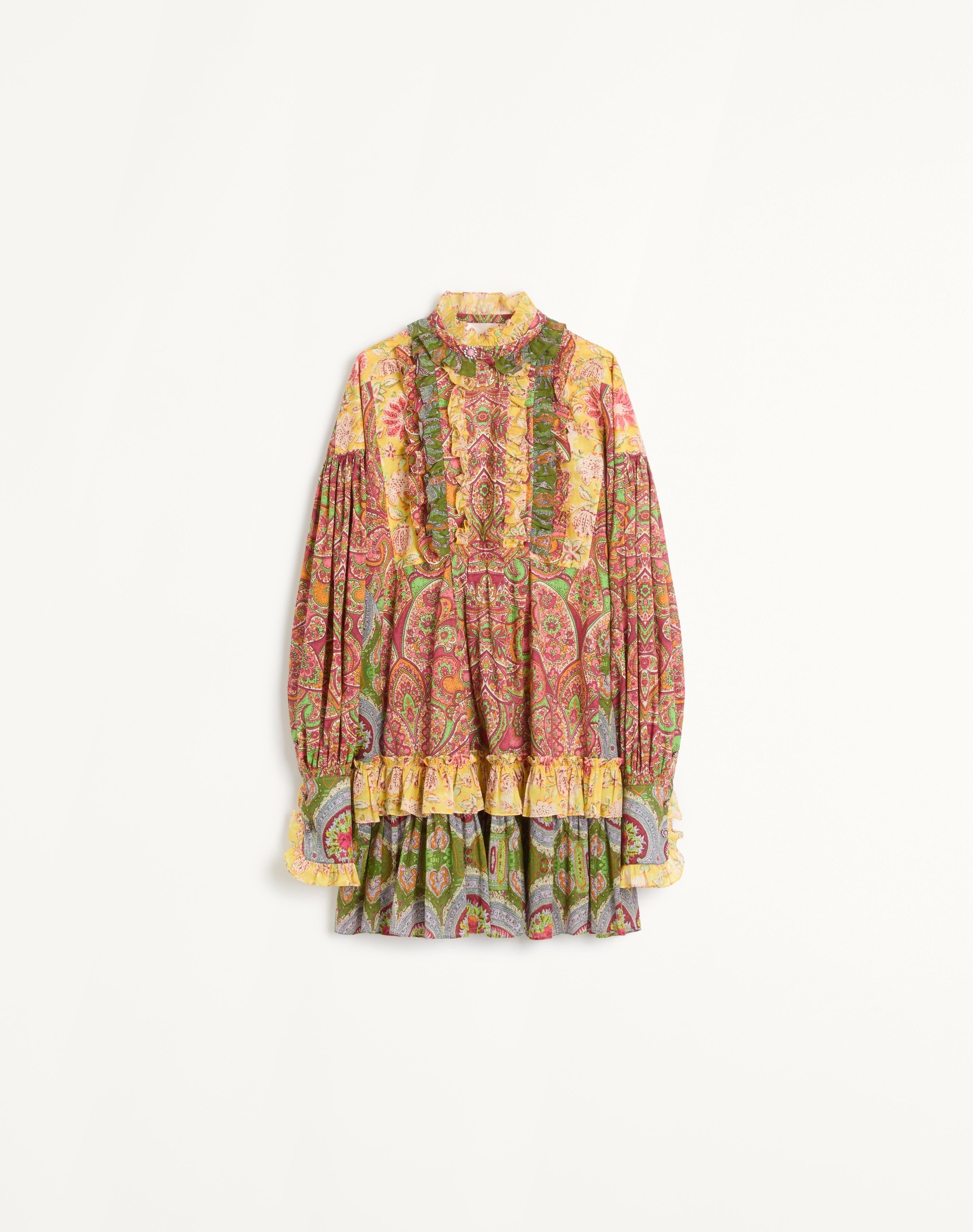 Short Dress in Voyage Imaginaire Cashmere Muslin - Ruffle detail - Front closure - Print patchwork workmanship - Voyage Imaginaire Cashmere Muslin (100% Cotton) - Length: 90 cm / 35.4 in. from the shoulders in an Italian size 40 - The model is 176 cm / 5'9" tall and wears an Italian size 40 - Made in Italy The look of the model is completed by a Valentino Garavani 9TO5 Bag and Valentino Garavani Bowow Shoes. Product code: 6B3VAFD5975_M12