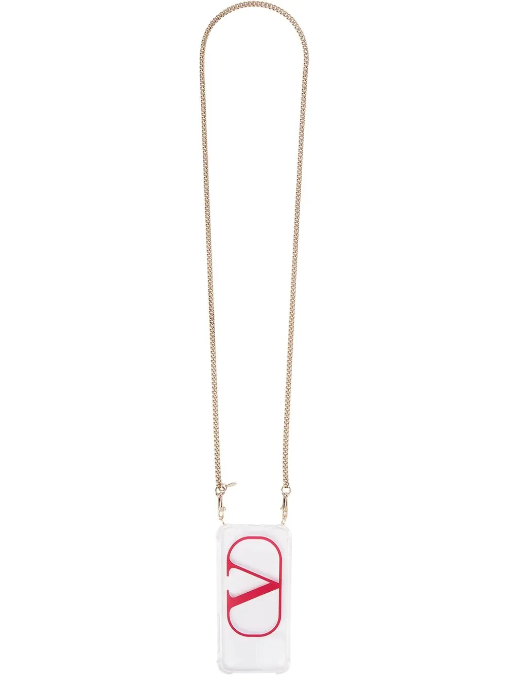 signature VLOGO iPhone 11 Pro case Procrastination isn't always in your best interest unless it involves your phone. Valentino Garavani made sure you're able to spend hours on it by adding to this iPhone case the support of a cable-link chain (great for holding on to it) and a VLTN printed logo (so there's no doubt from where it's from). All ends covered. Highlights - This clear valentino garavani vlogo iphone 11 pro case features a transparent pvc case, suspended from a detachable gold tone chain strap. it features an oversized pink logo on the front. we haven't been this excited for a phone add-on since our costly sugababes ringtones and matchmaking text days. this valentino garavani case just reminded us how far we've come – we even pay our own phone bill now. Made in Italy Composition Acrylic 70%, Polyurethane 30% Outer: Brass 100% SIZE & FIT Measurement DEPTH 0.39 in(1 cm) WIDTH 3.14 in(8 cm) LENGTH 6.29 in(16 cm) Washing instructions Read Manufacturer Guidelines