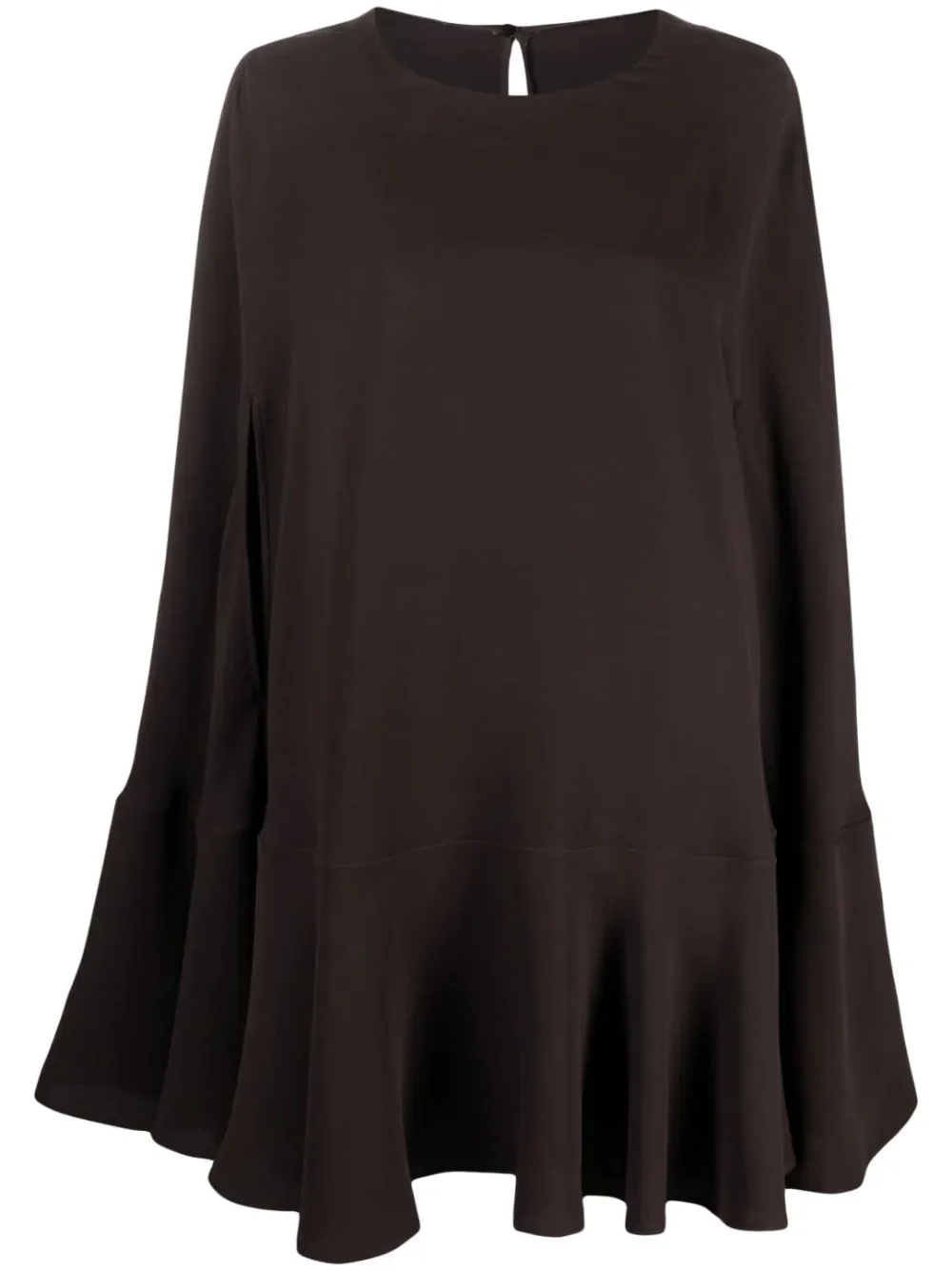 silk cape dress Achieving evening elegance is easier than you think. With a dramatic cape silhouette, this brown silk dress from Valentino Garavani will ensure you're the most sophisticated person in the room. Prepare to be on the receiving end of compliments all night long... Highlights - Valentino ready to wear - Brown - Silk - Slit detailing - Cape design - Flared design - Round neck Made in Italy Composition Silk 100% Washing instructions Read Manufacturer Guidelines