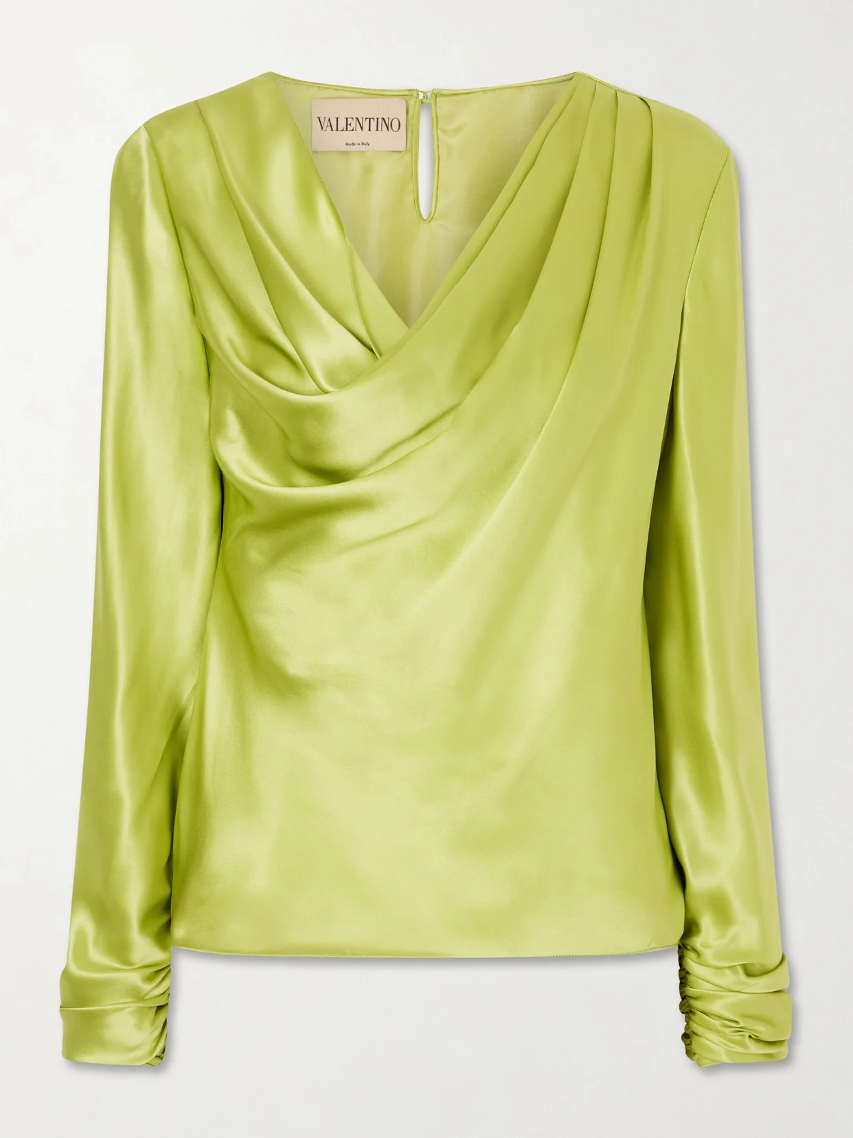 Valentino Garavani's blouse brings a sense of drama to evening dressing. Crafted from lustrous silk, it has elegant draping throughout that frames the loose scoop neckline. Wear yours with stacked pearl jewelry for a touch of maximalism.