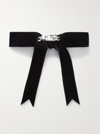 EDITORS'NOTES Bows are such an easy to way to sweeten up your look. Valentino Garavani's version is made from soft silk-velvet and features a dainty version of the house's 'VLOGO' at its center. SIZE & FIT This item’s measurements are: - Length: 13cm / 5.1in - Width: 14cm / 5.5in DETAILS & CARE - Black silk-velvet - 100% silk - Clip fastening