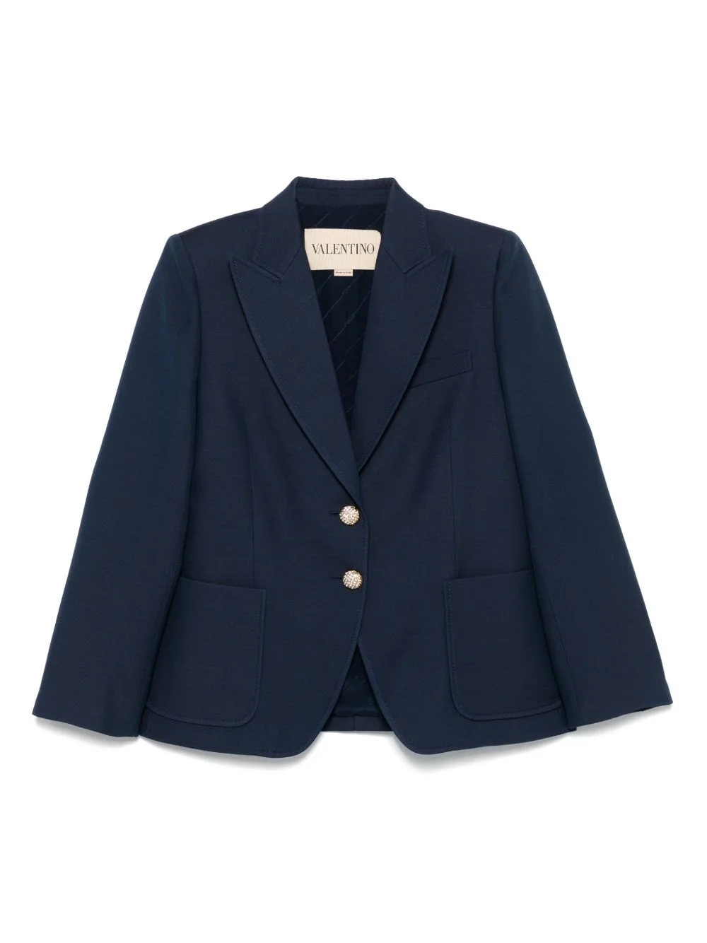 single-breasted blazer Highlights - Navy blue - Front button fastening - Two side patch pockets - Long sleeves - Buttoned cuffs Made in Italy Composition Outer: Wool 68%, Virgin Wool 65%, Silk 35%, Viscose 32% Lining: Acetate 75%, Silk 25% SIZE & FIT Model measurements Height 5 ft 10 in(1.79 m) Bust/Chest 33.07 in(84 cm) Hips 35.82 in(91 cm) Waist 24.01 in(61 cm) FittingInformation Designed for a slim fit that sits just away from the body offering a close yet comfortable fit The internal shoulder pads offer a structured shape Made from a midweight non-stretch fabric
