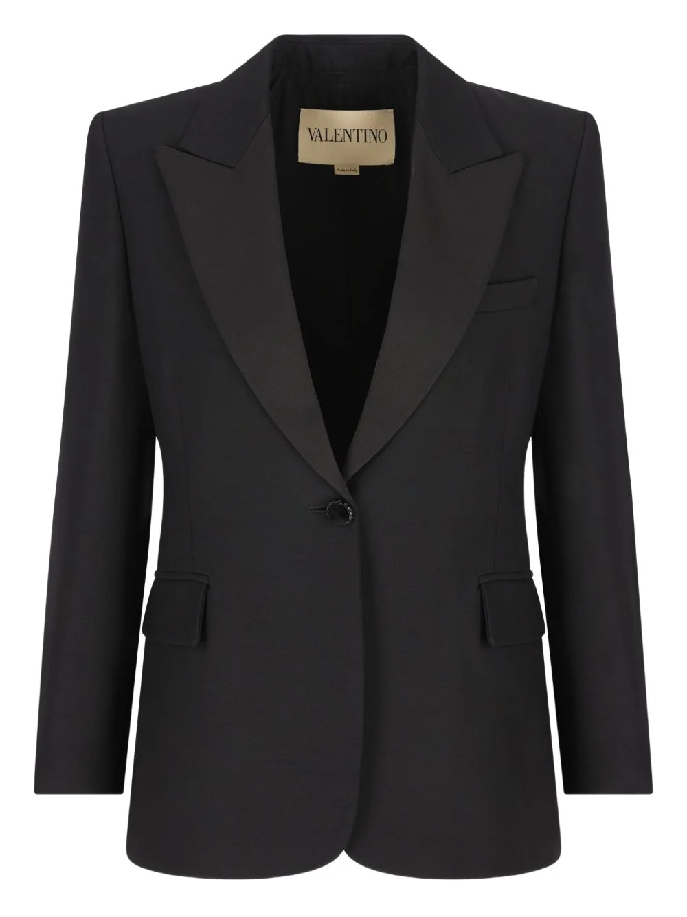single-breasted blazer Highlights - Black - Peak lapels - Single-breasted - Button fastening - Flap pockets Made in Italy Composition Virgin Wool 65%, Silk 35% Washing instructions Read Manufacturer Guidelines