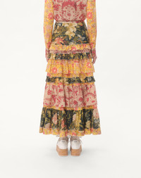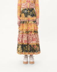 Flounce Skirt in Mussola Apres L’Hiver - Patchwork print design - Mussola Apres L’Hiver (100% Cotton) - Length: 140 cm / 55.1 in. from the waist in an Italian size 40 - The model is 176 cm / 5'9" tall and wears an Italian size 40 - Made in Italy The look of the model is completed by a Valentino Garavani Nellcote Bag and Valentino Garavani Freedots Shoes. Product code: 6B3RACG6977_M12