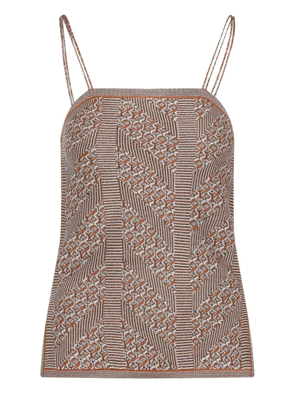 abstract-print top Highlights - Sesame beige - Square neck - Sleeveless - Straight hem Made in Italy Composition Viscose 92%, Metallic Fibre 8%
