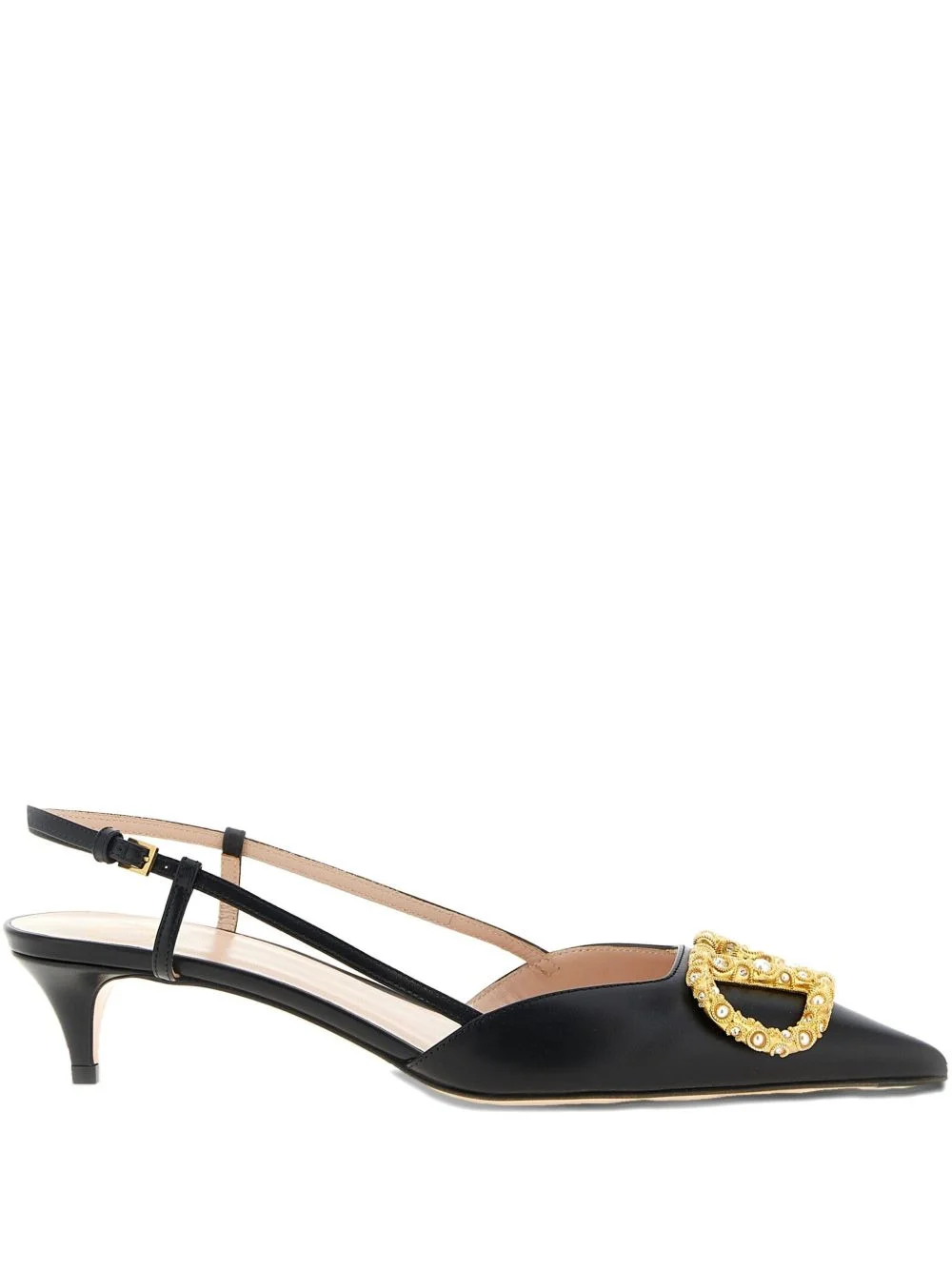 40mm embellished slingback heeled pumps Highlights - Black - Calf leather - Pointed toe - Slingback strap - Adjustable buckle fastening - Vlogo signature embellishment Made in Italy Composition Outer: Calf Leather 100% Sole: Calf Leather 100% Lining: Calf Leather 100% SIZE & FIT Measurement HEEL 1.57 in(4 cm)