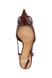 cod. W2S0R01TMKAFD Patent leather slingback shoes with VLogo Signature detail on the front, pointed toe, adjustable strap, heel, and leather sole. Color: Bordeaux Size & Fit: EU WOMAN - Heels: 8 cm Composition: 100% calfskin leather (Bos Taurus) Made in: Italy
