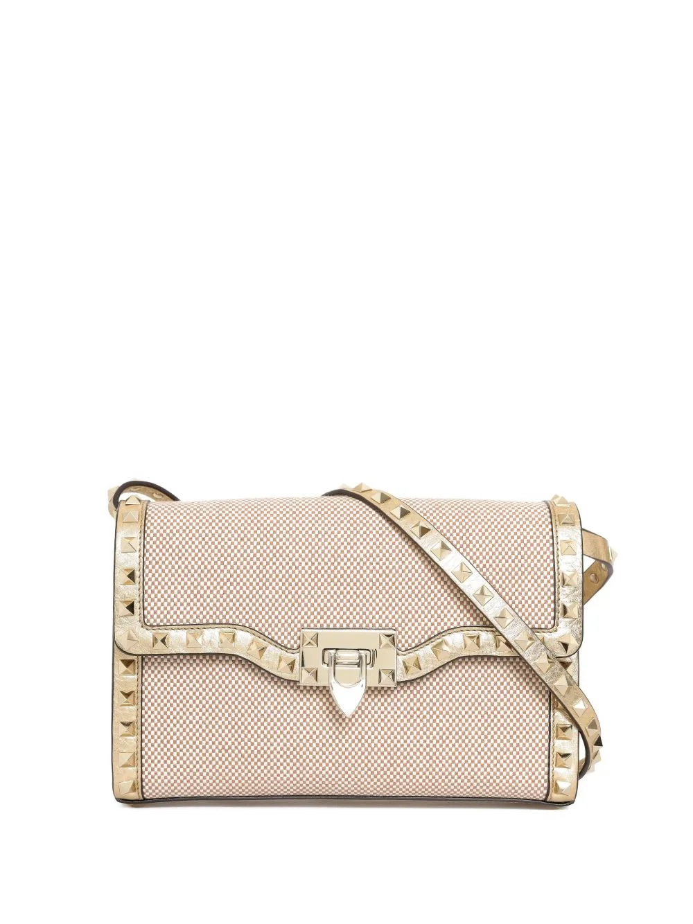 Rockstud-embellished cross body bag Highlights - Light beige - Gold-tone rockstuds - Flap closure - Shoulder strap Made in Italy Composition Outer: Canvas 100% SIZE & FIT Measurement DEPTH 2.36 in(6 cm) HEIGHT 6.29 in(16 cm) WIDTH 9.05 in(23 cm)