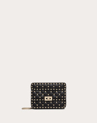 Small Valentino Garavani Rockstud Spike chain bag in supple lambskin Nappa. Quilted construction, embellished with small studs. Equipped with both a detachable sliding chain strap and a detachable handle, this accessory can be worn as a crossbody/shoulder bag or used as a handbag. - Quilted Nappa. Argyle pattern enhanced by tone-on-tone stitching - Platinum-finish studs and hardware - Twist-lock closure - Nappa lining. Interior: open red leather pocket - Dimensions: W20xH11.5xD5 / W7.9xH4.5xD2 in. - Weight: 0.56 Kg / 1.2 lbs - Made in Italy Product code: 5W2B0123NAP_0NO