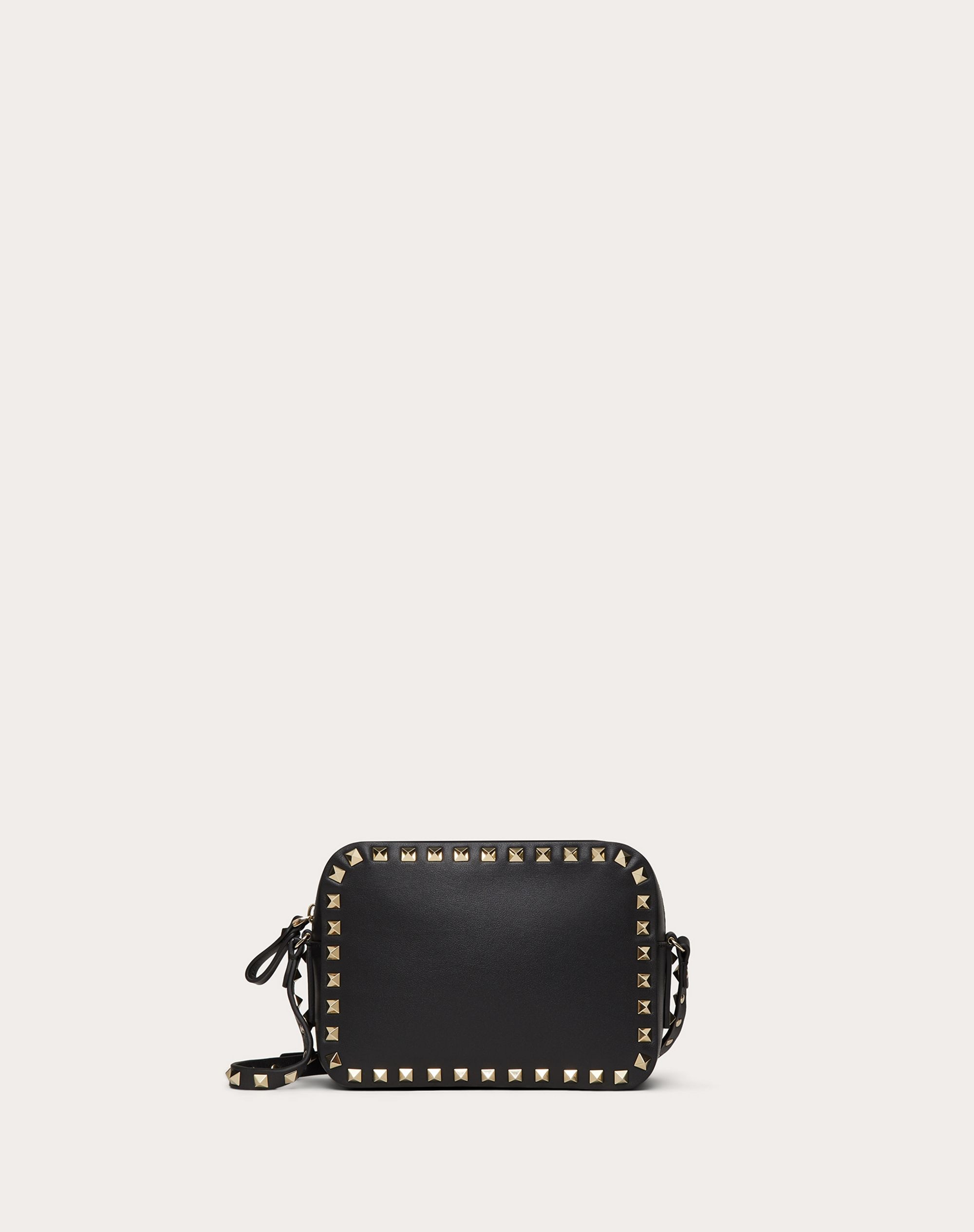 Valentino Garavani Rockstud crossbody bag in calfskin leather. - Platinum-finish studs and hardware - Zipper closure - Adjustable studded strap - Interior: flat open pocket - Dimensions: W18x H13.5xD6 cm / W7xH5xD2.3 in Strap: 119 cm x 49 in - Made in Italy Product Code: WW0B0809BOL0NO
