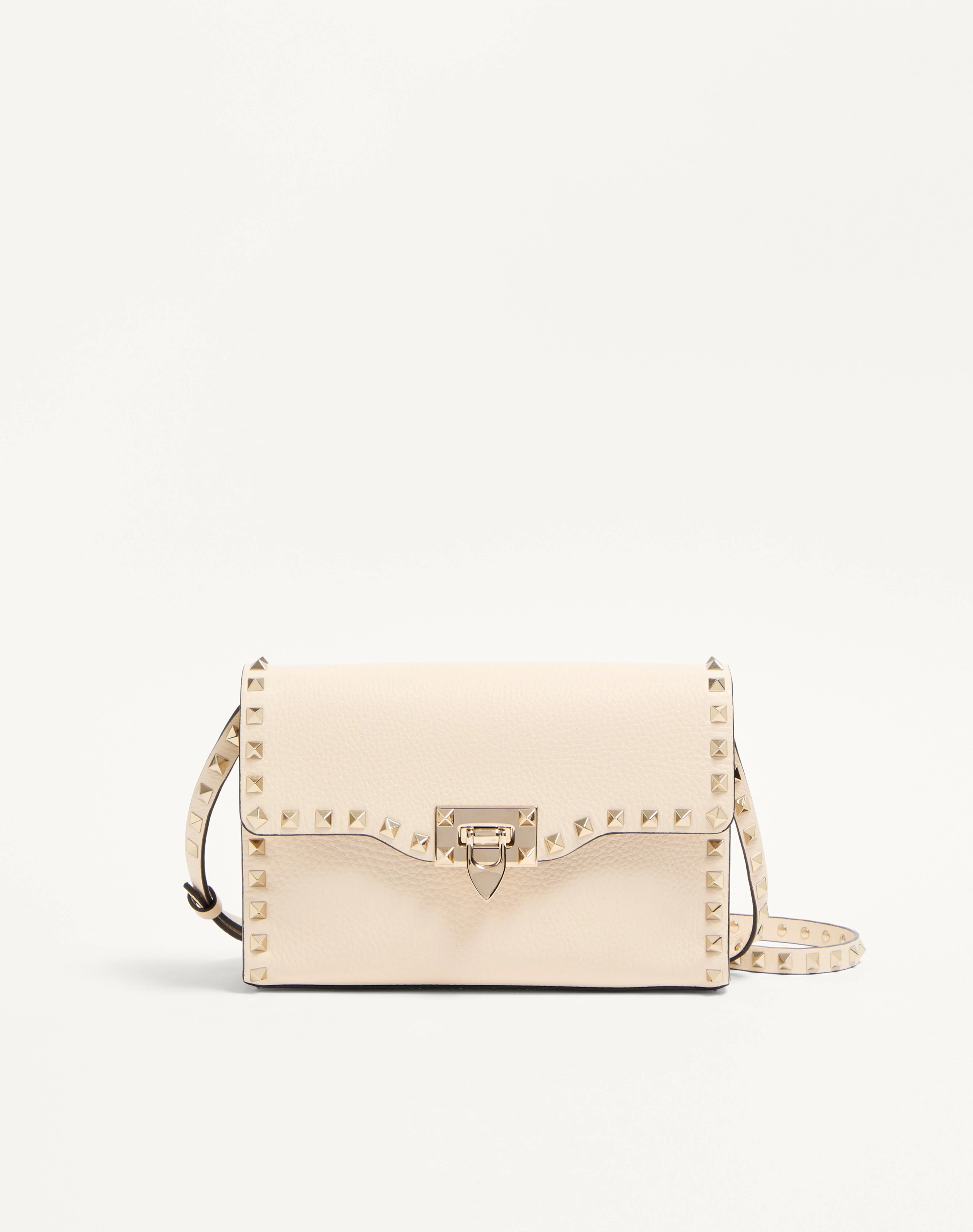 Small Valentino Garavani Rockstud grainy calfskin crossbody bag. - Platinum-finish metal studs and hardware - Hook closure - Adjustable shoulder strap - Interior: open slip pocket - Dimensions: W22.5xH15xD6 cm / W8.9xH5.9xD2.4 in. - Made in Italy Product code: 7W2B0181VSF_I16