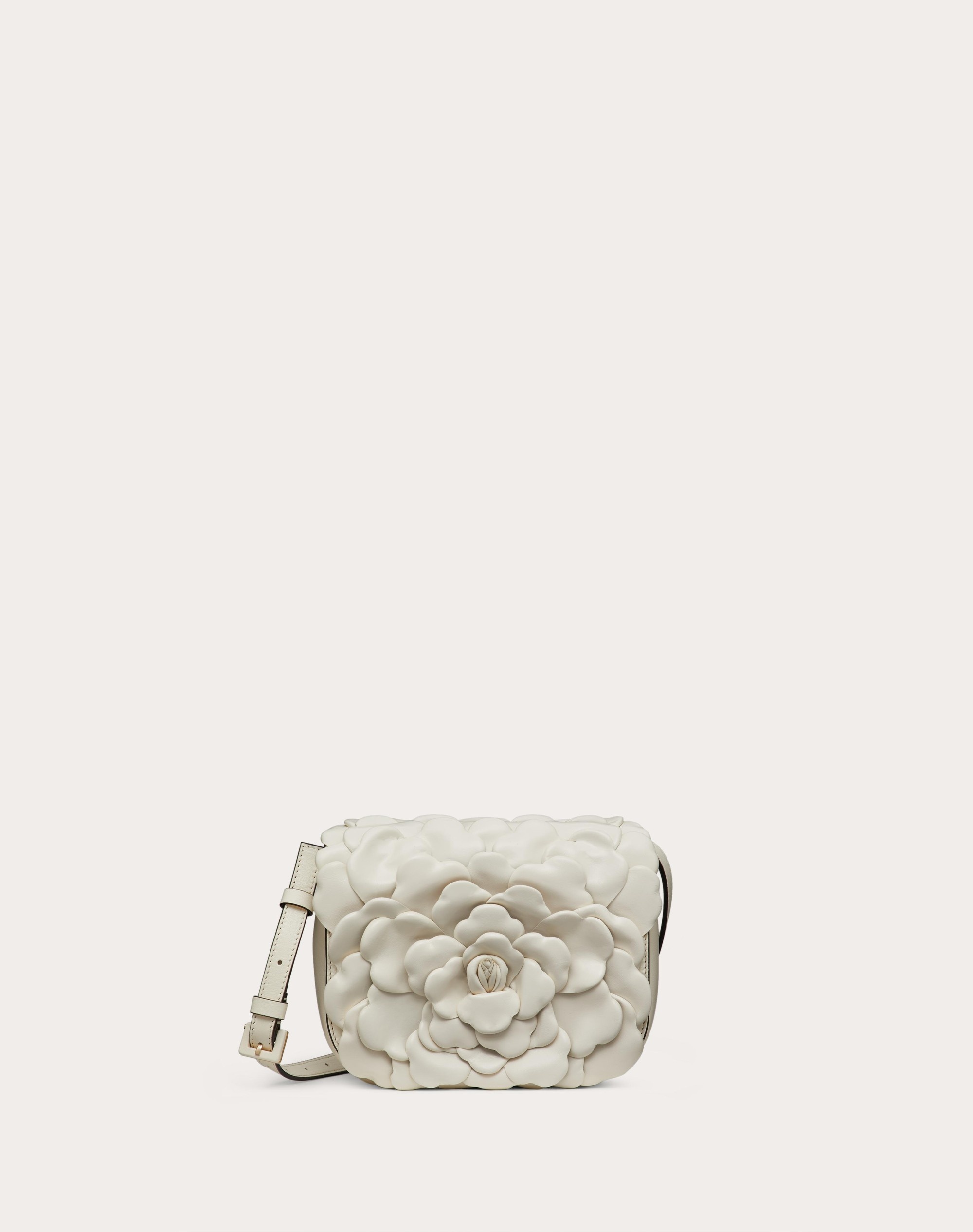 Small Valentino Garavani 03 Rose Edition Atelier Bag with shoulder strap, characterized by leather petals creating a 3D rose detail. - Magnetic closure - Adjustable and removable strap - Nappa lining. Interior: zippered pocket - Dimensions: W20xH17x10.5 cm / W7.9xH6.7xD3.9 in. - Made in Italy Product Code WB0I02JBZ_098