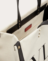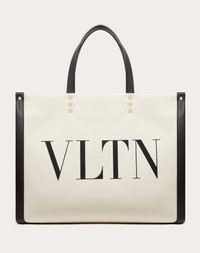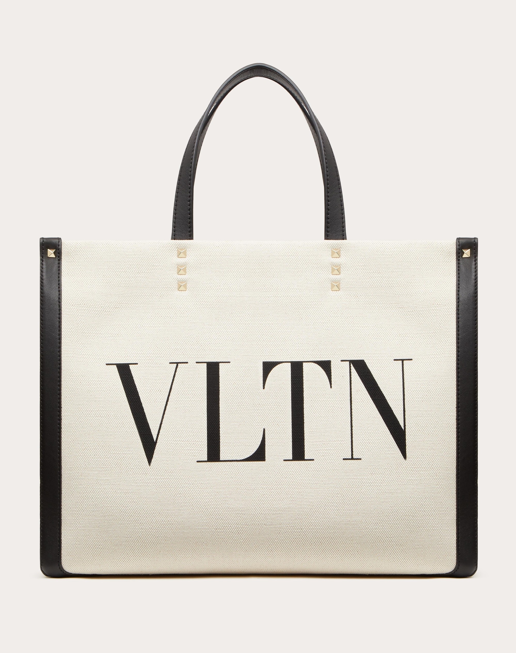 Small Valentino Garavani canvas tote bag with VLTN print and leather details. - Platinum-finish studs and hardware - Interior: Detachable flat pouch - Dimensions: W37xH28xD14 cm / W14.6xH11xD5.5 in. - Made in Italy Product code: XW2B0D21FWB_EX9