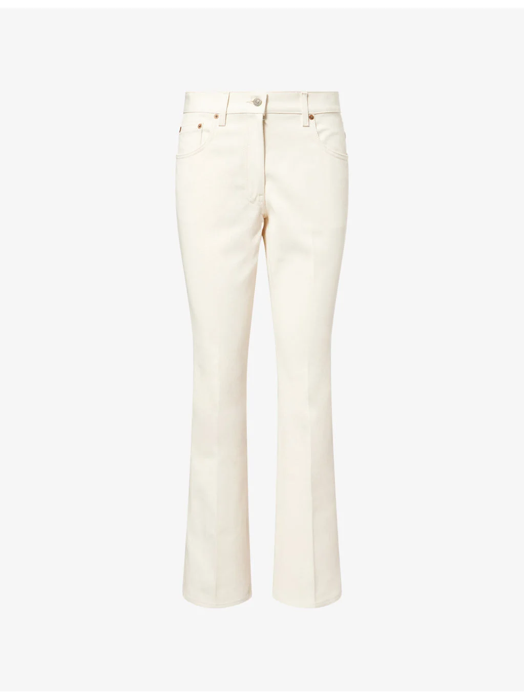 PRODUCT DETAILS - Valentino Garavani denim jeans - 100% cotton - Button and zip-fly fastening - Regular fit, mid-rise, straight leg, structured waistband with belt loops, five pockets, VLogo hardware at back pocket, brand patch at back, branded hardware - Dry clean - Made in Italy - True to size - Model is 5ft 10in/1.78m and wears a size UK 8 - Midweight, non-stretch Ref: R04550167