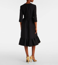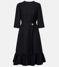 Valentino inspires individuality and redefines the values of craftsmanship and beauty deeply rooted in its storied heritage. Crafted from signature Crepe Couture, this sophisticated midi dress features ruffled cuffs for a chic touch. Product Details - Material: 65% wool, 35% silk - Care instructions: dry clean - Made in Italy - Designer color name: Nero - Item color: black - Lining: 100% silk - Closure: zipper, hook fastening - Short vent - Item number: P01060164 Size & Fit - True to size - Cinched waist - Non-stretchy fabric - The model seen in the picture is 178cm-5'10" and wearing a size IT 40