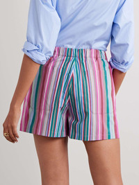 EDITORS'NOTES Printed with colorful stripes, Valentino Garavani's shorts will instantly enliven anything you wear them with. They're made from lightweight cotton-poplin and have a high-rise waist threaded with an adjustable drawstring. SIZE & FIT Model measurements: - Fits true to size, however those who are between sizes should take the smaller size - High-rise, cut for a relaxed fit - Drawstring waist, designed for a flexible fit - Lightweight, non-stretchy fabric - Model is 175cm/ 5'9" and is wearing an IT 40 - Bust: 79cm/ 31" - Waist: 61cm/ 24" - Hip: 88cm/ 34.5" DETAILS & CARE - Multicolored cotton-poplin - Pull on - 100% cotton - Dry clean