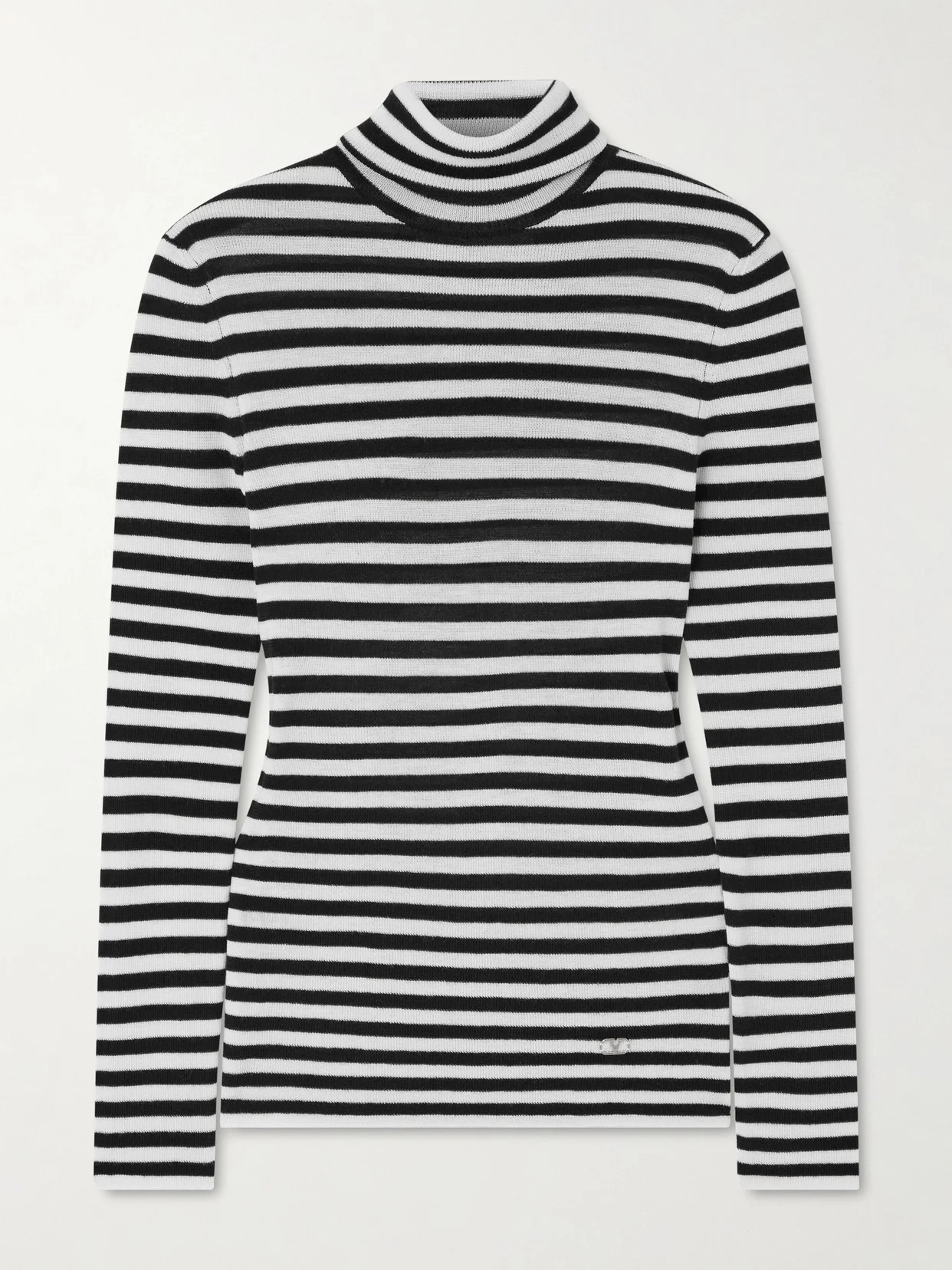 Valentino Garavani's top stays true to the label's timeless Italian-chic. Made from wool, it's patterned with monochrome stripes and has a close fit and cozy turtleneck. We like it styled with a mini skirt and knee boots.