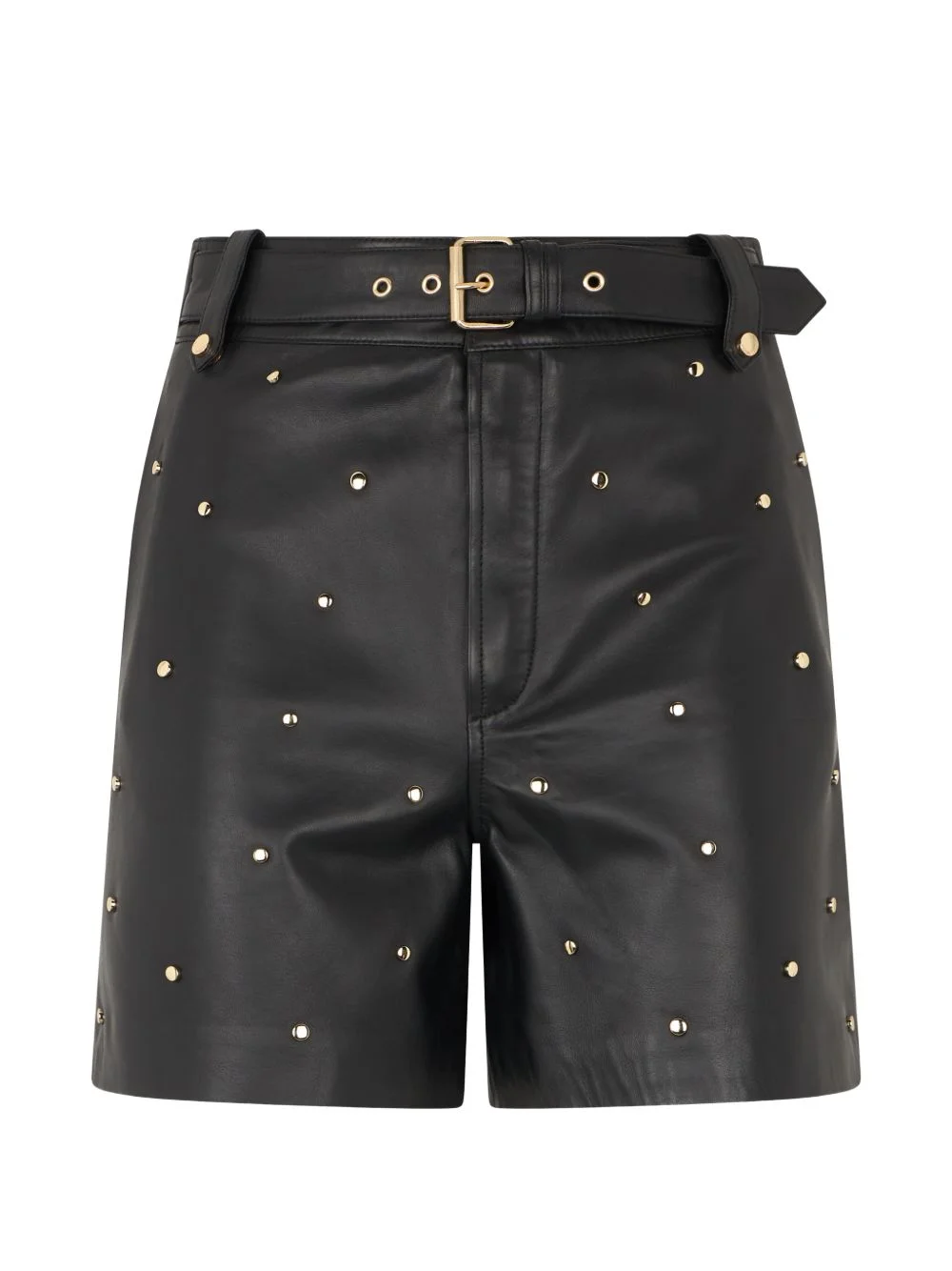 studded belted shorts Highlights - Black - Gold-tone studs - Belted - Belt loops Imported Composition Calf Leather 100%