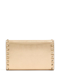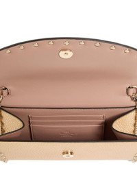studded leather crossbody bag Highlights - Gold - Textured finish - Chain shoulder strap - Decorative studs - Flap closure - Internal card slots Made in Italy Composition Calf Leather 100% SIZE & FIT Measurement DEPTH 1.18 in(3 cm) HEIGHT 4.72 in(12 cm) WIDTH 7.48 in(19 cm)