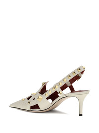 studded pointed heeled pumps Highlights - Off-white - Stud embellishment - Slingback strap - Buckle fastening - Pointed toe - Mid heel Made in Italy Composition Outer: Goat Skin 100% Lining: Goat Skin 100% Sole: Calf Leather 100% SIZE & FIT Measurement HEEL 2.55 in(6.5 cm)