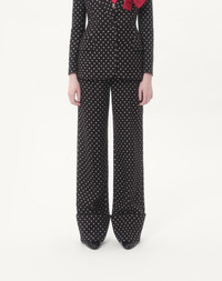 Straight-cut pants in Supergran Plusdepois print - Turn-ups at the ankle - Front zipper and hook-and-eye closure - Supergran Plusdepois (100% Viscose) - Length: 117 cm / 46.1 in. from the waist in an Italian size 40 - Leg opening: 24 cm / 9.4 in. in an Italian size 40 - The model is 176 cm / 5'9" tall and wears an Italian size 40 - Made in Italy Product code: 6B0RB6F098S_TB1