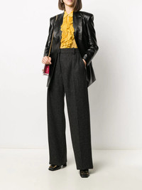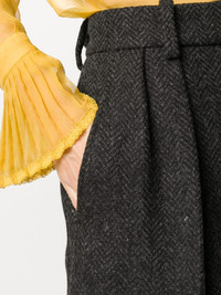 tailored herringbone trousers Power dressing has never been this easy thanks to Valentino Garavani. Crafted from a blend of wool, these trousers feature a herringbone pattern for a classic touch. Pair with your next board meeting. Highlights - Valentino ready to wear - Grey - Wool blend - Herringbone pattern - Wide leg - Hook and zip fly fastening - Belt loops - Two side slit pockets - Two rear welt pockets - Pleat detailing - Floor-length Made in Italy Composition Outer: Cotton 100%, Wool 80%, Polyamide 20% Lining: Cupro 100%, Viscose 63%, Silk 37% SIZE & FIT Model measurements Height 5 ft 10 in(1.77 m) Bust/Chest 35.03 in(89 cm) Hips 35.03 in(89 cm) Waist 23.62 in(60 cm) FittingInformation This piece fits true to size. We recommend you get your regular size Designed to be fitted at the waist, loose over the leg Made with a mid-weight non-stretch fabric Washing instructions Dry Clean Only