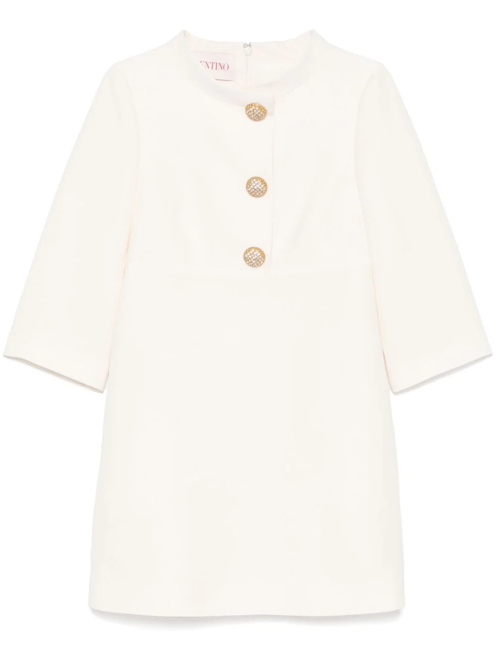 tailored mini dress Highlights - Valentino dress - Almond beige - Concealed rear hook and zip fastening - Front press-stud fastening - Two side slit pockets - Stand-up collar - The full look includes valentino garavani accessories. Made in Italy Composition Outer: Virgin Wool 65%, Silk 35% Lining: Silk 100%, Polyester 100% Washing instructions Dry Clean Only