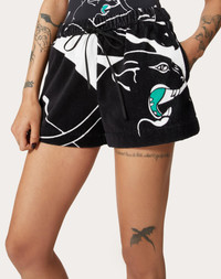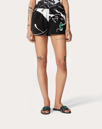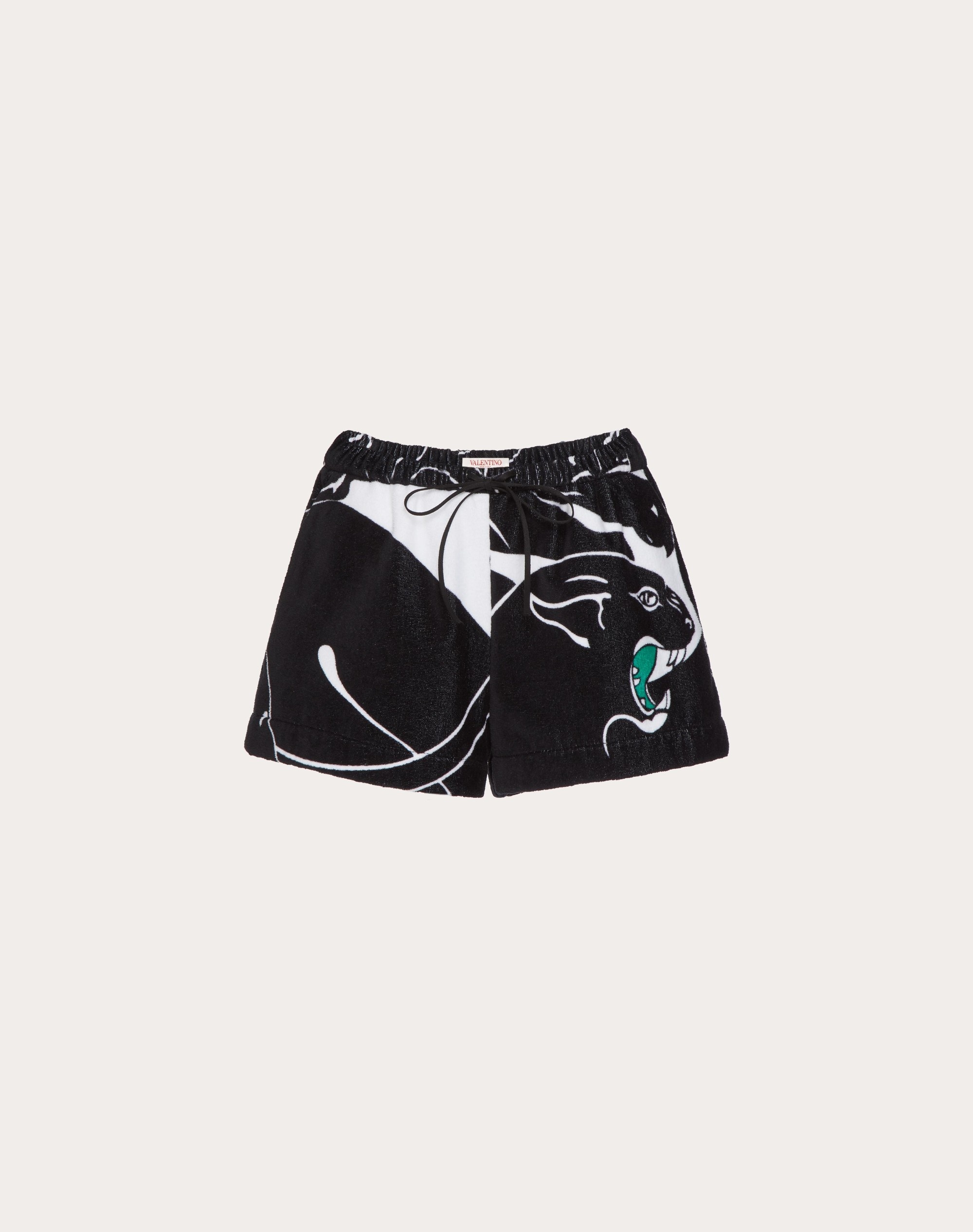 Terry Cotton Panther shorts - Drawstring waist - Terry Cotton Panther (100% Cotton) - Habotai lining (100% Silk) - Length 32.5cm / 12.7 in. from the waist in an Italian size 40 - Leg opening: 35 cm / 13.8 in. in an Italian size 40 - Inseam: 8.5cm / 3.3 in. an Italian size 40 - The model is 176 cm / 5'9" tall and wears an Italian size 40 - Made in Italy The look of the model is completed by a Valentino Garavani Bag and Valentino Garavani Shoes. Product code: 3B3RF12T86D_K1E
