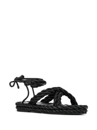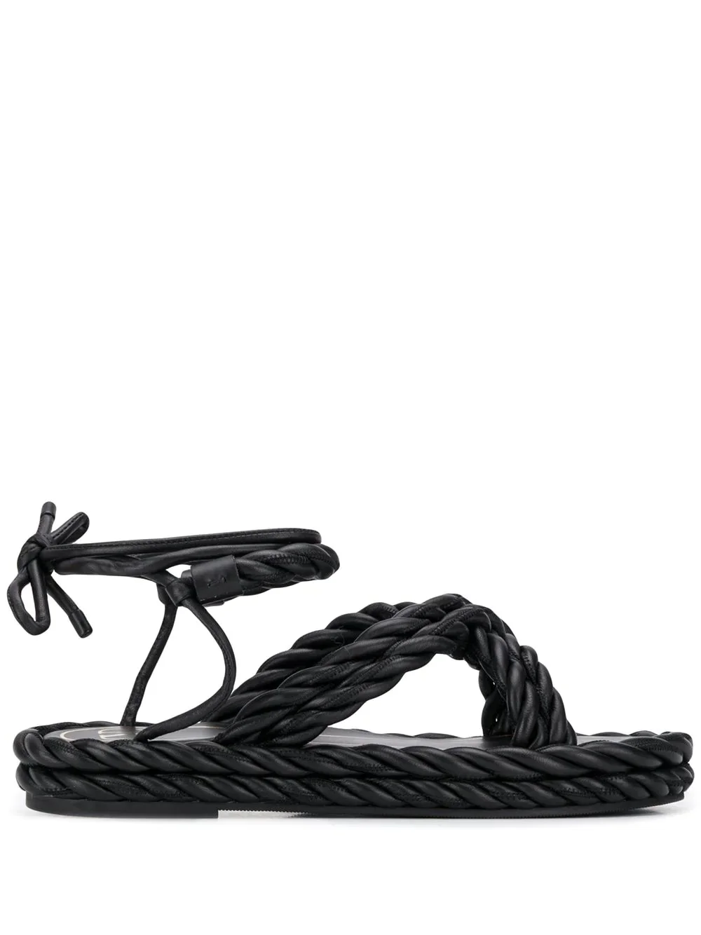 The Rope ankle-tie sandals Vacations mean leaving those stilettos at home and giving your feet a treat for once. So slip them into these The Rope sandals from Valentino Garavani instead with a flat sole that's perfect for walking around and exploring a new town. Get on the move in these beauties. Highlights - Black - Leather - Rope-style straps - Tie-fastening ankle strap - Crossover strap detail - Open toe - Flat rubber sole Made in Italy Composition Outer: Lamb Skin 100% Lining: Calf Leather 100% Sole: Rubber 100% SIZE & FIT Measurement HEEL 1.18 in(3 cm) Sole height 0.98 in(2.5 cm) Washing instructions Read Manufacturer Guidelines
