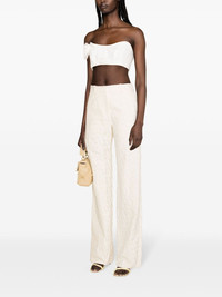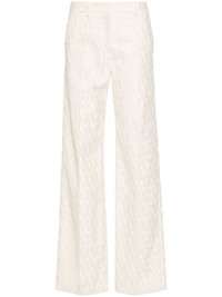 Toile Iconographe flocked tailored trousers Highlights - Light beige/ivory white - Cotton blend - Toile iconographe flocked logo - High-rise - Concealed front button, hook and zip fastening - Belt loops - Two side slash pockets - Two rear jetted pockets - Pressed crease - Straight leg Made in Italy Composition Outer: Cotton 71%, Viscose 29% Lining: Silk 100% SIZE & FIT Model measurements Height 5 ft 11 in(1.8 m) Bust/Chest 34.25 in(87 cm) Hips 35.82 in(91 cm) Waist 24.8 in(63 cm) FittingInformation Designed for a straight-leg fit, these trousers allow for a close fit at the waist and an unrestricted, comfortable fit over the leg Made from a midweight non-stretch fabric This piece fits true to size – take your usual size Washing instructions Dry Clean Only