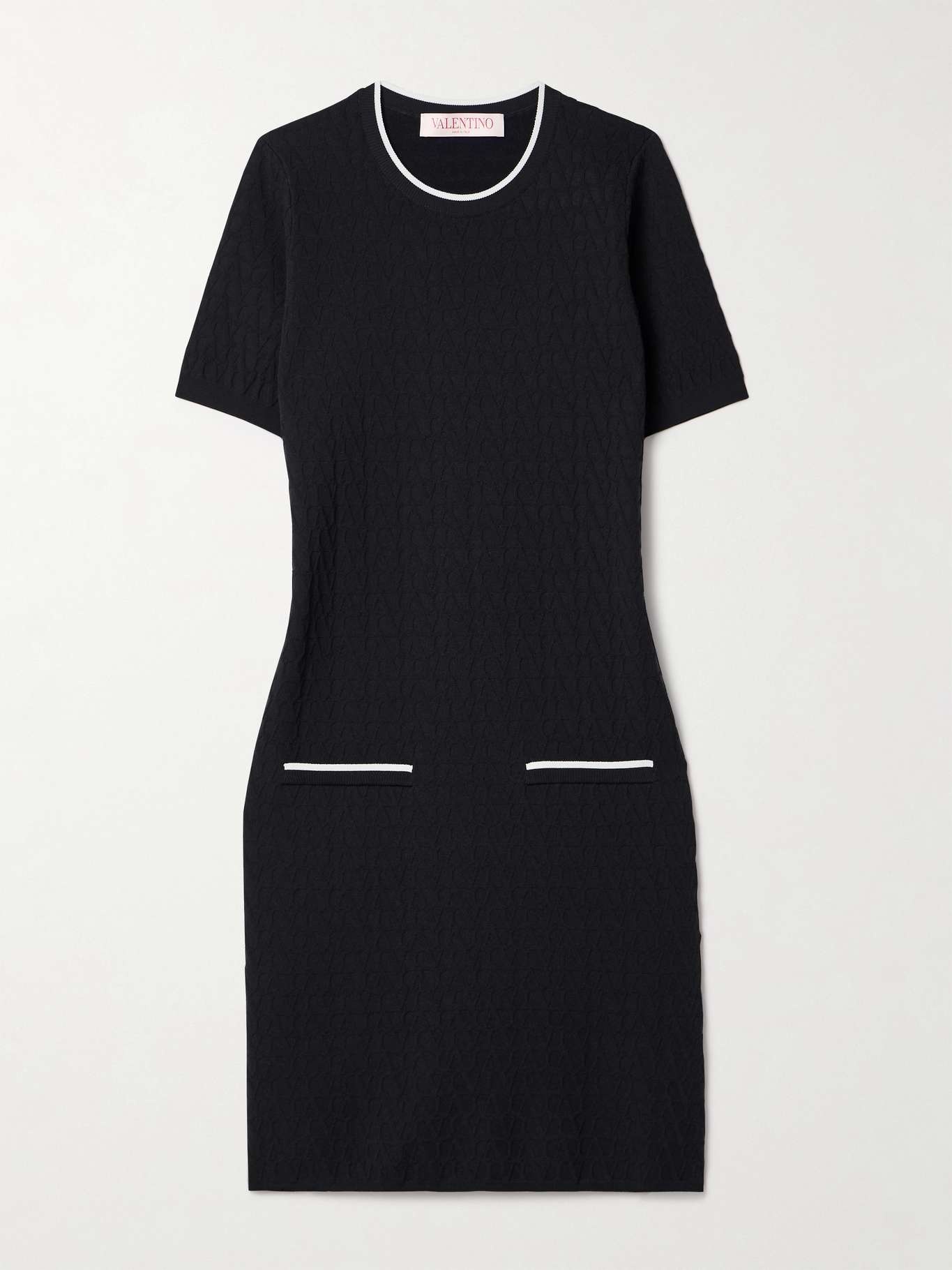EDITORS'NOTES Valentino Garavani's mini dress is jacquard-knitted with the recurring 'VLOGO' throughout - it's a subtle way to display your brand loyalty. Designed for a slightly loose fit, it's defined by contrasting trims and has a slightly nipped-in waist. SIZE & FIT Model measurements: - Fits true to size, take your normal size - Designed for a slightly loose fit - Mid-weight knit - Model is 175cm/ 5'9" and is wearing a size XSmall - Bust: 79cm/ 31” - Waist: 61cm/ 24” - Hip: 88cm/ 34.5” DETAILS & CARE - Midnight-blue and white jacquard-knit - Slips on - 70% viscose, 16% polyester, 10% polyamide, 4% elastane - Dry clean