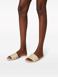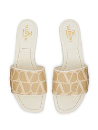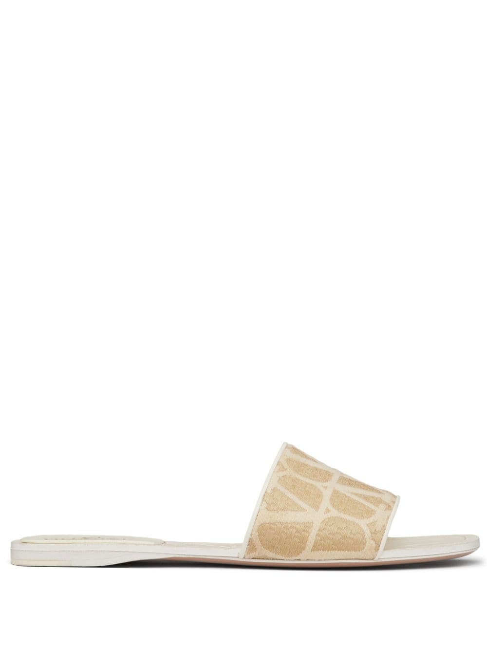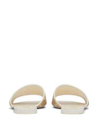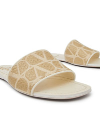 Toile Iconographe raffia slides Highlights - Sand beige/light beige - Calf leather - Monogram pattern - Single toe strap - Square open toe - Slip-on style - Branded leather insole - Flat leather sole Made in Italy Composition Outer: Lambskin 100%, Cotton 64%, Polyamide 18%, Polyester 15%, Acrylic 3% Sole: Calf Leather 100% Lining: Goat Skin 100%