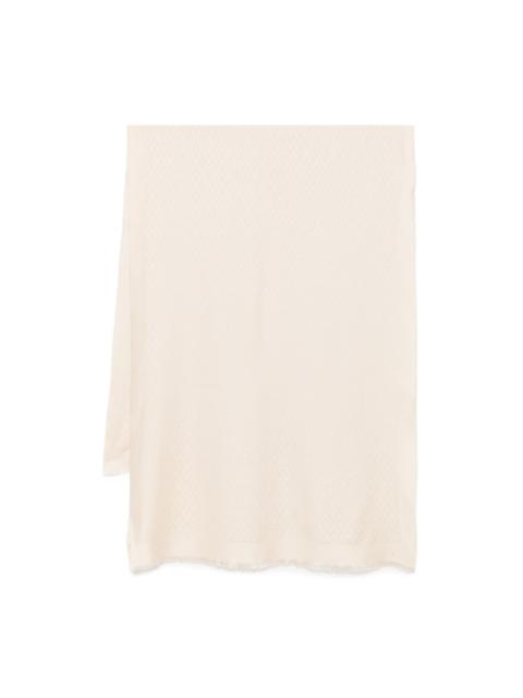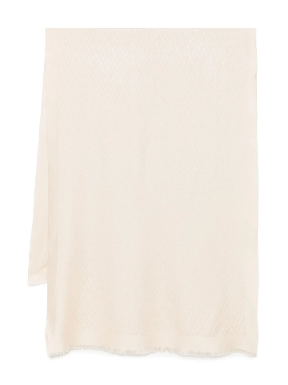 Toute La V scarf Highlights - Light beige - Jacquard logo motif - Frayed detailing - Rectangle shape Made in Italy Composition Wool 100% SIZE & FIT Measurement LENGTH 78.74 in(200 cm) WIDTH 29.52 in(75 cm)