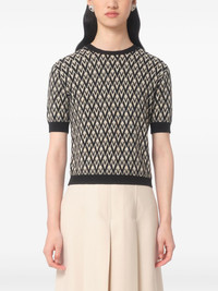 geometric-pattern T-shirt Highlights - Beige/black - Virgin wool - Crew neck - Short sleeves - Ribbed cuffs and hem - Contrasting trim - Geometric pattern Made in Italy Composition Virgin Wool 100% Washing instructions Read Manufacturer Guidelines