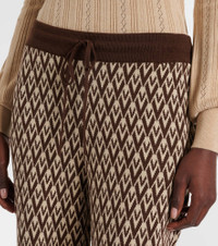 A laid-back interpretation of Valentino's aesthetic, these sweatpants strike the perfect balance between comfort and sophistication. Spun from virgin wool, they feature the signature Toute La V jacquard pattern and contrasting ribbed-knit hemlines. Product Details - Material: 100% virgin wool - Care instructions: hand wash - Made in Italy - Designer color name: Crema/Moro - Item number: P01006586 Size & Fit - True to size - Elasticated waist - Adjustable at the waist - Stretchy fabric - Tapered leg - The model seen in the picture is 178cm-5'10" and wearing a size XS
