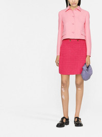 tweed mini skirt Valentino Garavani adds its signature touch to this tweed mini skirt, creating a sophisticated style. Presented in a pink hue, this design is detailed with the label's Rockstud embellishment for a branded finish. Highlights - Valentino ready to wear - Pink - Wool blend - Tweed - Gold-tone rockstud detailing - High-waisted Made in Italy Composition Outer: Cotton 31%, Acrylic 29%, Viscose 18%, Wool 15%, Polyester 6% Lining: Viscose 63%, Silk 37% SIZE & FIT Model measurements Height 5 ft 10 in(1.77 m) Bust/Chest 32.67 in(83 cm) Hips 35.43 in(90 cm) Waist 23.62 in(60 cm) FittingInformation This piece fits true to size. We recommend you get your regular size Designed to be fitted at the waist and hips, loose over the leg Made with a mid-weight non-stretch fabric Washing instructions Dry Clean Only