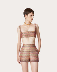 Tweed Party top - Concealed side zipper and hook-and-eye fastening - Tweed Party (42% Polyamide, 19% Polyester, 18% Metallic Thread, 8% Cotton, 6% Cupro, 4% Acrylic, 2% Wool, 1% Viscose) - Unlined - Length: 35 cm / 13.7 in. from the shoulders in Italian size 40 - The model is 176 cm / 5'9" tall and wears an Italian size 40 - Made in Italy Product code: BAE7N87LT_YT2