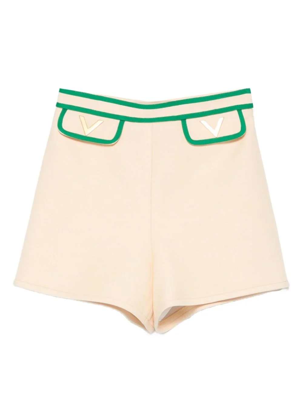 v-detail shorts Highlights - Valentino ready to wear - White - V-detail - Gold-tone details - Green trim Made in Italy Composition Outer: Polyamide 98%, Virgin Wool 65%, Silk 35%, Elastane 2% Lining: Silk 100% SIZE & FIT Model measurements Height 5 ft 10 in(1.79 m) Bust/Chest 31.88 in(81 cm) Hips 35.43 in(90 cm) Waist 23.62 in(60 cm) Washing instructions Dry Clean Only