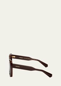 Valentino Garavani "V-Gold II" butterfly sunglasses in acetate Lens/bridge/temple (in mm): 53-18-145 Solid lenses V-logo nose bridge accent Saddle nose bridge Logo on temples Thin, tapered arms 100% UVA/UVB protection Made in Japan Proposition 65 warning for California residents Online Inquiries: BGS21_D53WC| Store Inquiries: #4948115