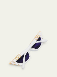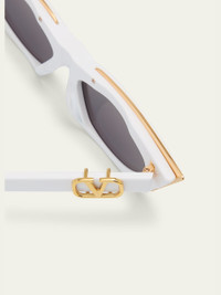 Valentino Garavani "VGoldcut I" cateye sunglasses in acetate and titanium Lens/bridge/temple (in mm): 5517142 Golden accents on frames Solid lenses Saddle nose bridge Vlogo accent on temples Thin, tapered arms 100% UVA/UVB protection Made in Japan