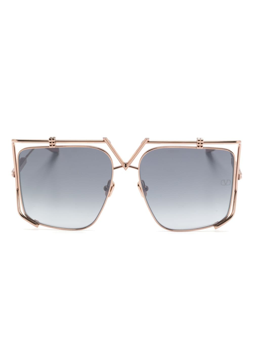 V oversize-frame sunglasses Highlights - Rose gold-tone hardware - Titanium - Signature v logo plaque - Signature rockstud detailing - Gradient lenses - Oversize frame - Straight arms - Curved tips - These glasses come with a protective case. Imported Composition Outer: Titanium 100% SIZE & FIT Measurement Arm Length 5.7 in(14.5 cm) Bridge Width 0.86 in(2.2 cm) Lens Diameter 2.32 in(5.9 cm)