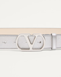 Valentino Garavani VLogo Signature belt in smooth laminated calfskin. - VLogo Signature buckle with Palladium finish - Smooth laminated calfskin exterior - Calfskin interior - Dimensions: H.30 mm / 1.2 in. - Made in Italy Product code: 8W2T0SM3XUC_S13