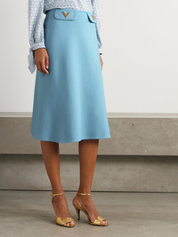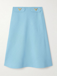 The gold-tone 'V'-shaped hardware at the flap pockets of this midi skirt makes it unmistakably Valentino Garavani. It's cut from canvas in a light-blue shade and has an A-line shape. Wear yours with a tucked-in blouse and pumps. Size & Fit - Fits true to size, take your normal size - Midi-length, designed to be worn just below the natural waist - Mid-weight, non-stretchy fabric - Model is 177cm/ 5'10" and is wearing an IT 40 Model measurements: - Bust: 86cm/ 34" - Waist: 65cm/ 25.5" - Hip: 90cm/ 35.5" Details & Care - Light-blue canvas - Concealed hook and zip fastening at side - 100% viscose; lining: 74% acetate, 26% silk - Fully lined - Dry clean