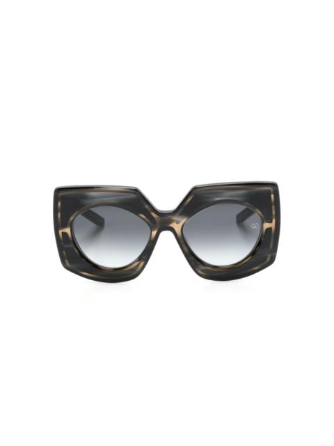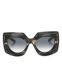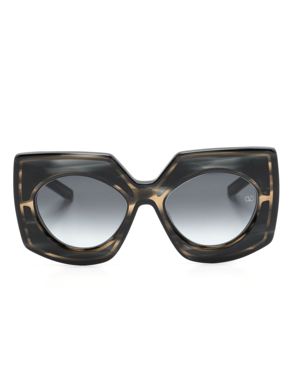 oversize-frame sunglasses Highlights - Black/gold-tone - Acetate - Transparent design - Oversize frame - Gradient lenses - Sculpted arms with vlogo signature - Curved tips - These glasses come with a protective case. Made in Italy Composition Acetate 100% SIZE & FIT Measurement Arm Length 5.7 in(14.5 cm) Bridge Width 0.78 in(2 cm) Lens Diameter 2.08 in(5.3 cm) Total Width 5.78 in(14.7 cm)