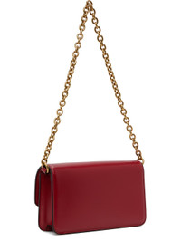 Buffed calfskin shoulder bag in red. · Adjustable and detachable cable chain shoulder strap · Adjustable and detachable crossbody strap · Logo hardware and cutout at face · Magnetic flap closure · Card slot at interior · Buffed nappa leather lining · Gold-tone hardware · H5" x W7.5" x D1.75" Supplier color: Rosso Calfskin. Made in Italy 251807F048048
