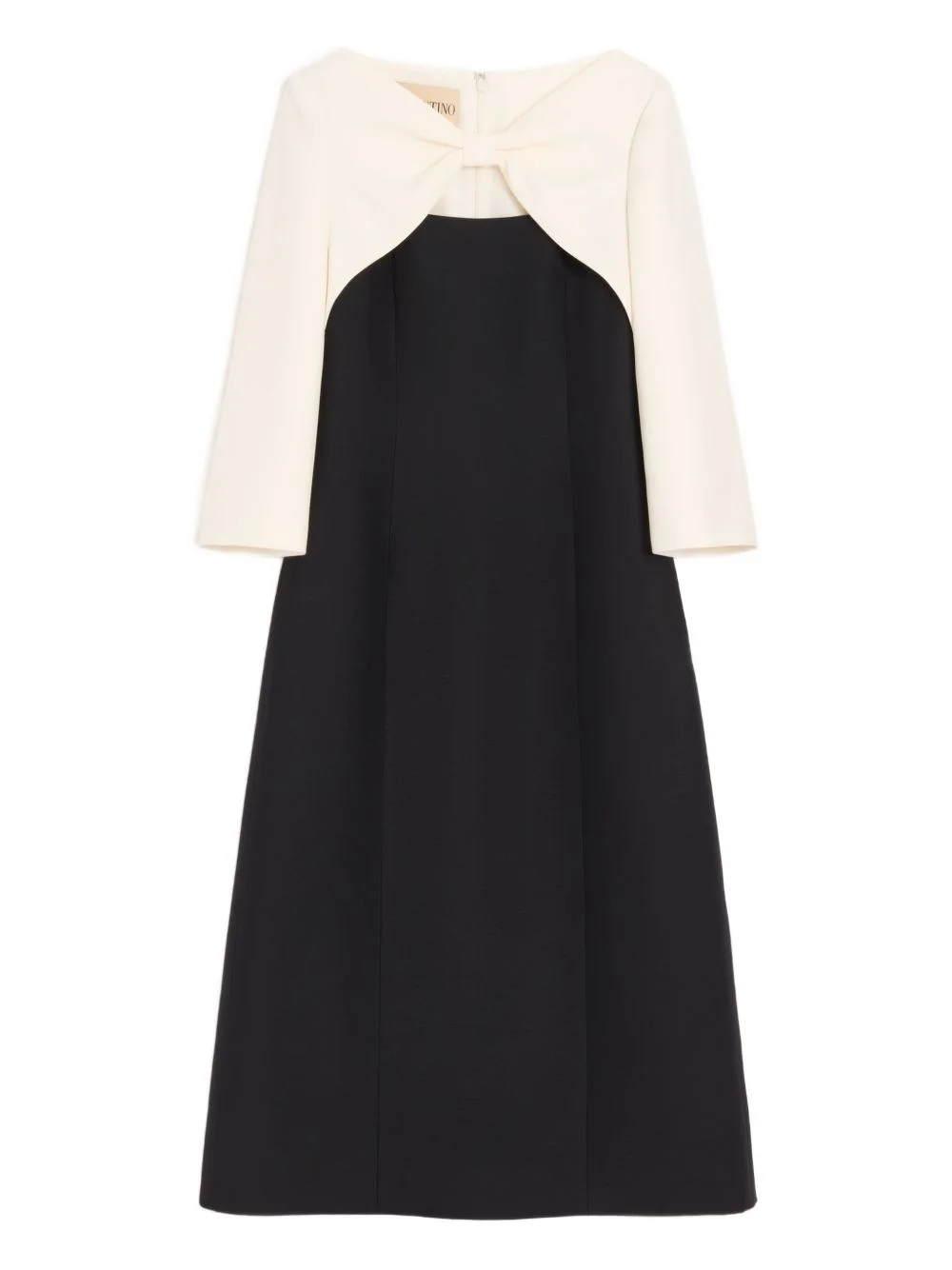 bow contrasting-sleeves midi dress Highlights - Black - Contrasting sleeves - Bow detail - Concealed rear zipper - Hook-and-eye fastening Made in Italy Composition Outer: Virgin Wool 65%, Silk 35% Lining: Viscose 91%, Elastane 9% Washing instructions Read Manufacturer Guidelines